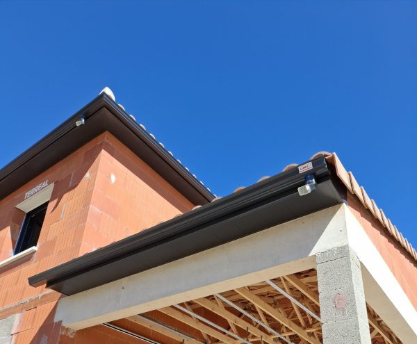 Notre dernière réalisation nous a menés à Mauguio, où nous sommes intervenus pour la fourniture et la pose d’une gouttière corniche en aluminium laqué, accompagnée de descentes d’eaux pluviales rectangulaires, également en aluminium laqué. Nous avons également installé deux boîtes à eau en aluminium laqué, fabriquées sur mesure selon notre nouveau modèle à assemblage invisible…